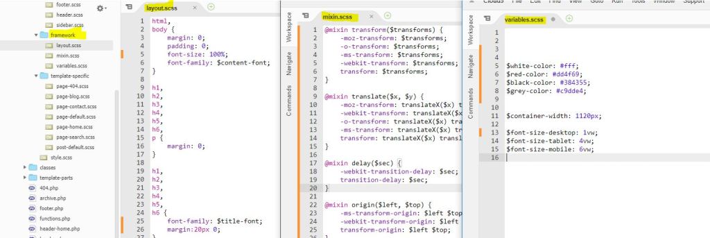 - If you need to change the color for the project you does not need to find all the stylesheet and replace the color. you just need to change the color in variable.scss in frame-work folder. It replace all the color declared for the variable.