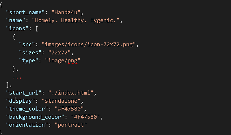 4. start_url: Refers to the file that has to be loaded first. In most cases, it is the entry point html file of the application.