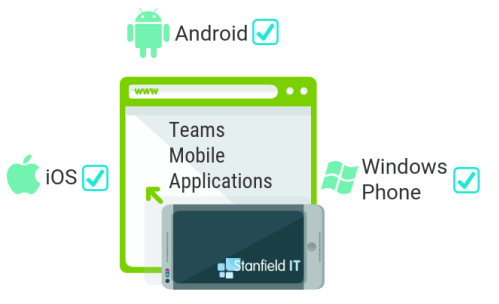 Teams not only has the comprehensive web interface, but you can collaborate on the go, or answer teammate questions from afar, using the mobile apps.